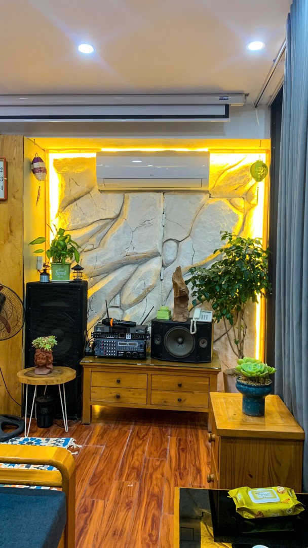 Những tiện nghi như sofa lớn, máy chiếu màn hình lớn 120 inch, điều hòa, wifi...đầy đủ